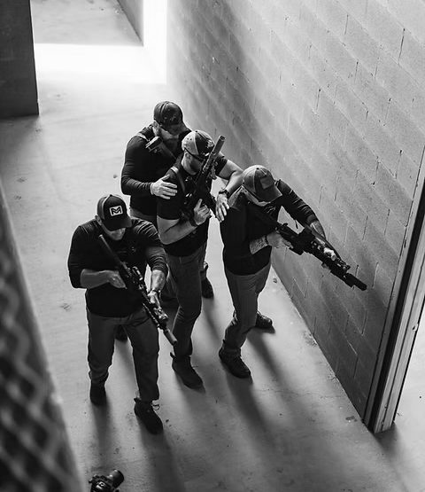 When the situation requires more than a single operative to ensure control, we work in team and in formations. Formations is group tactics were the operatives work as one unit. With precision, discipline and coordination, the team creates and increases the level of security.